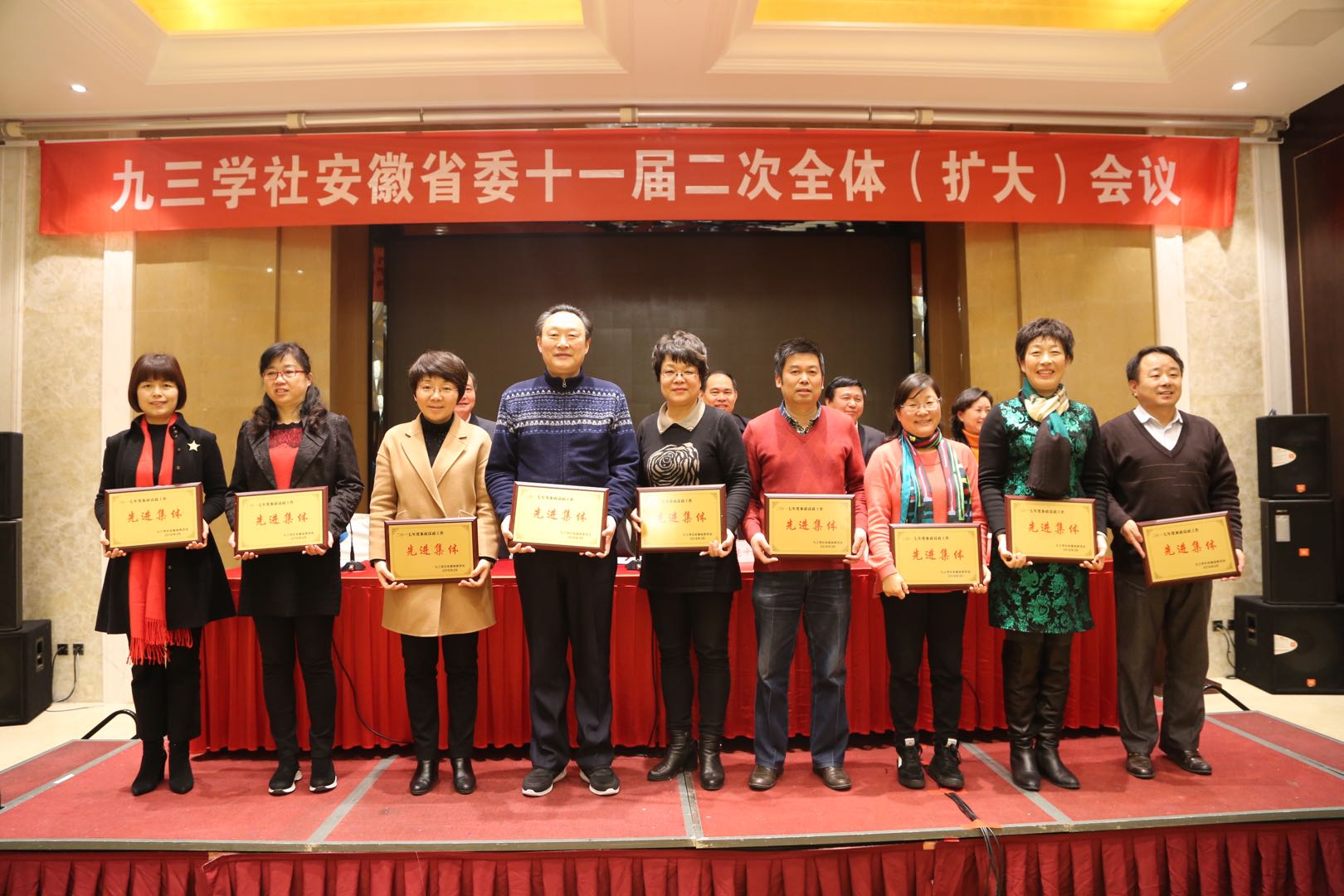 近日,九三学社安徽省第十一届委员会第二次全体会议在合肥丰大国际酒店隆重召开。九三学社安农大基层委主委傅松玲教授多次代表基层委上台领奖。2017年度社省委仅评选参政议政先进集体及个人、中国特色社会主义学习实践先进集体及个人单项奖。安农大基层委以省直单位得分第一获参政议政先进集体;社员周婷、丁雨莲被评为参政议政先进个人。其中周婷社员撰写的关于大别山水库提案作为九三学社省委发言材料在十二届省政协会议上进行发言,丁雨莲社员的乡村旅游与民宿发展调研报告被社省委采纳。同时,九三学社安农大基层委还被授予中国特色社会主义学习实践先进集体。此外,以安农大社员为主要成员的农林委,获得九三学社中央参政议政先进集体。