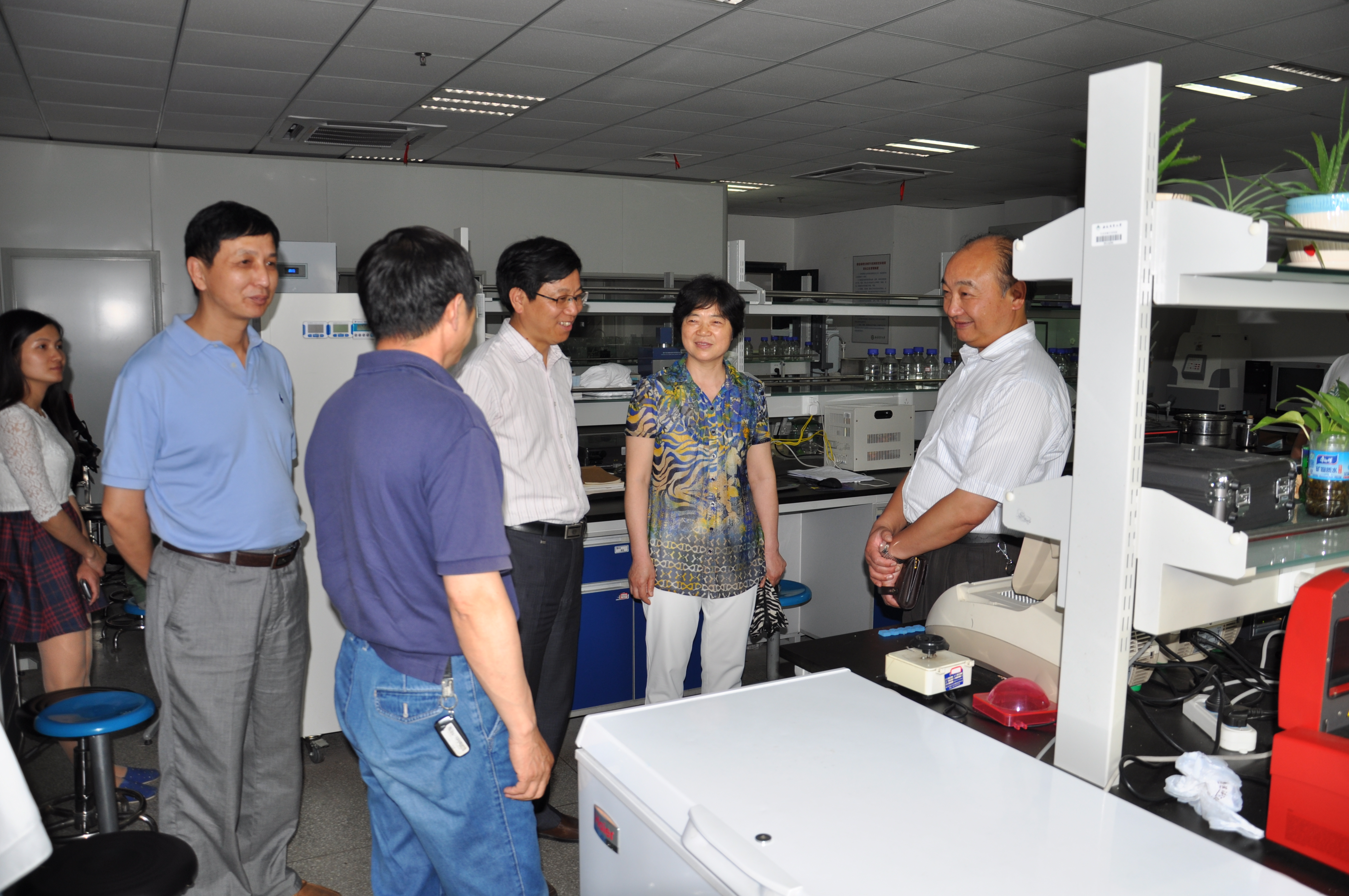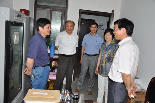 6月1日下午,校党委常委、纪委书记裴树东同志率统战部、动物科技学院领导等前往生物科技楼看望新任省政府参事魏建忠教授。
