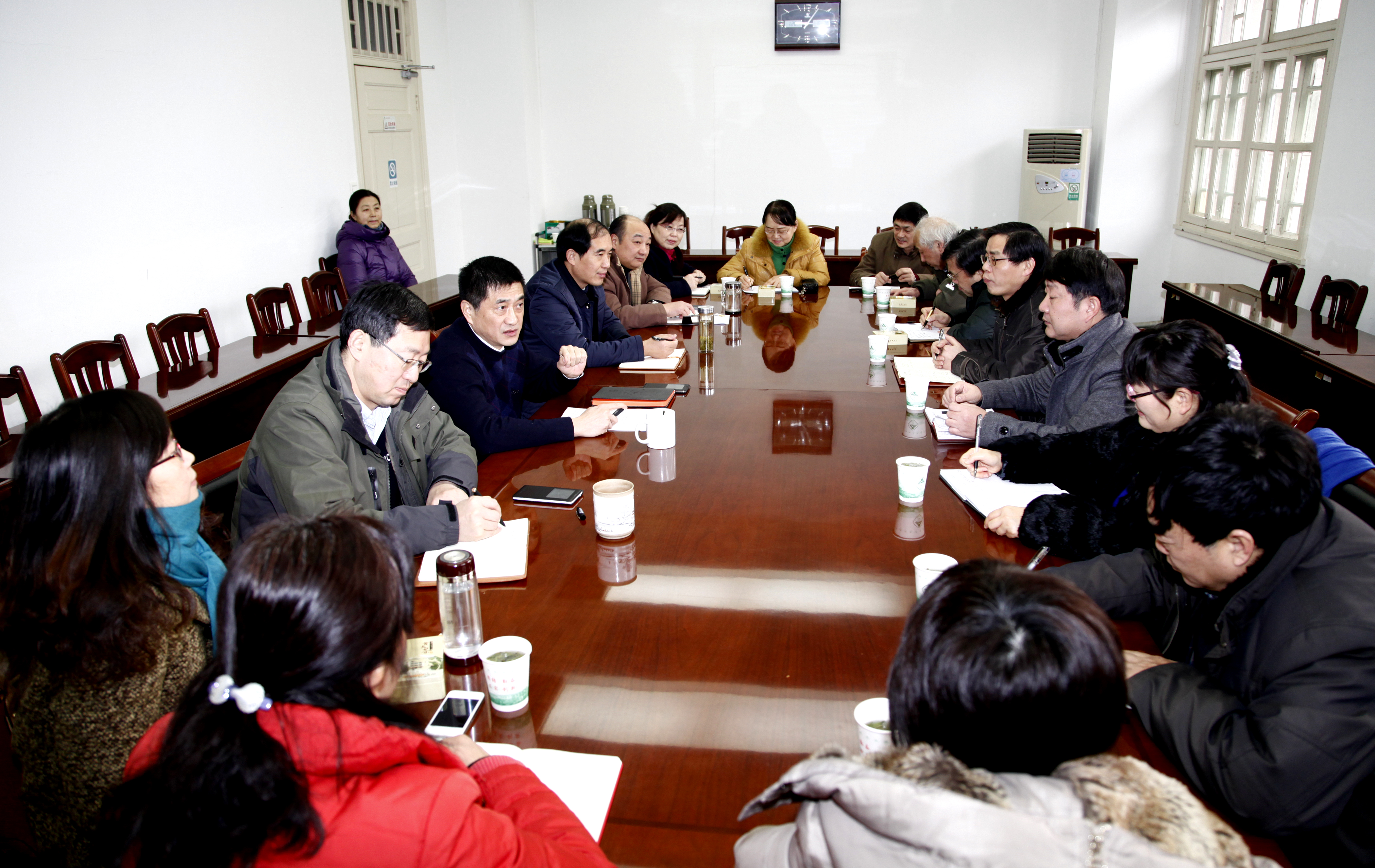 1月20日上午,宛晓春书记在校第一会议室召开党外代表人士座谈会,向我校的省政府参事、各级人大代表、政协委员、各民主党派主委、无党派知联会负责人等作2015年校情专题通报,校党委副书记李恩年同志出席会议。