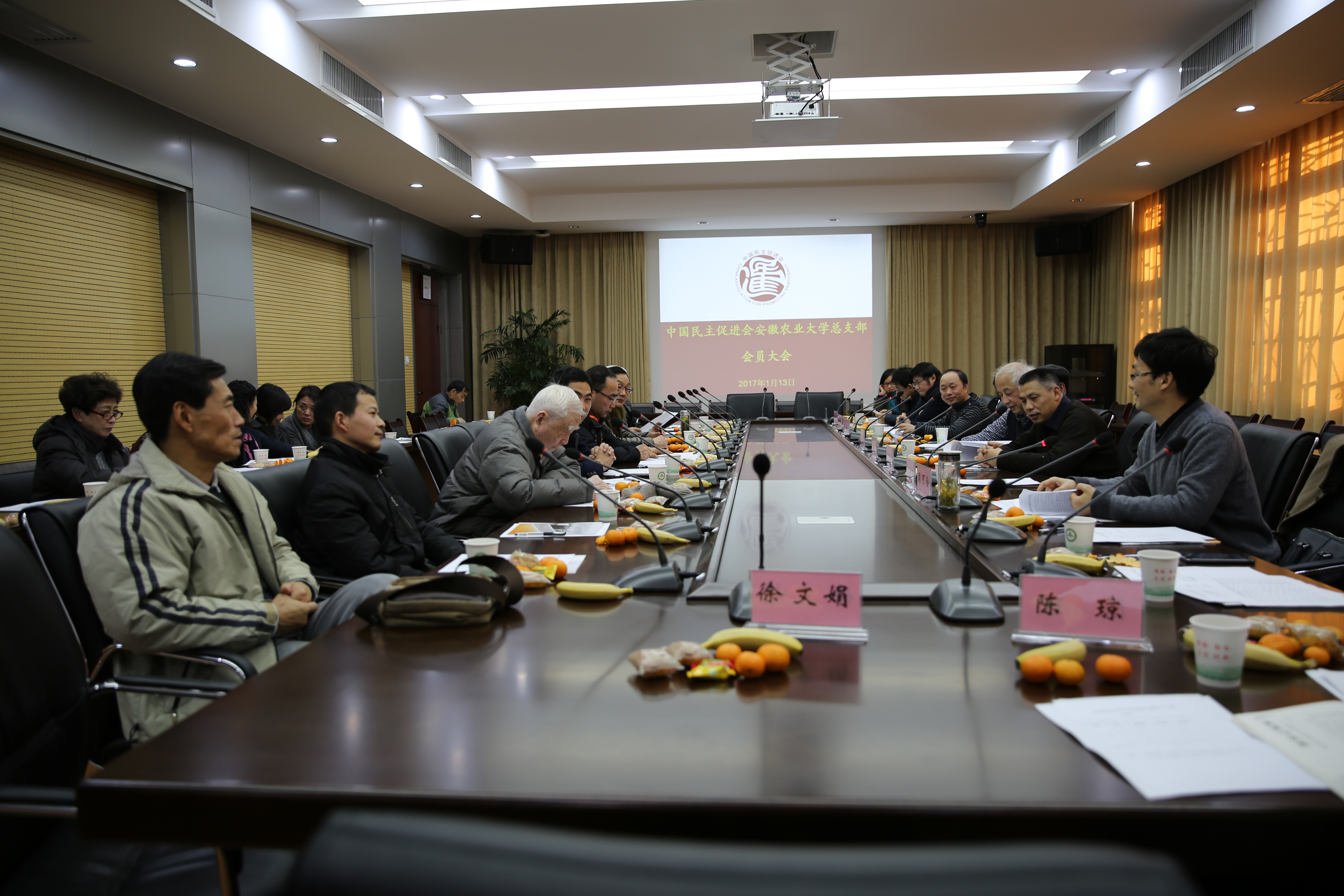 2017年1月13日下午,中国民主促进会安徽农业大学总支部在校第三会议室召开了2016年工作总结大会。民进省委会参政议政部部长刘朝来、组织部副部长张海波,省政府参事、民进省委原副主委张自立教授,校统战部部长刘惠东等出席会议。会议由民进安农大总支副主委毕守东教授主持。