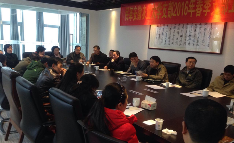 近日,民革安农大支部在合肥铂汇机械装备有限公司举行全体会议暨2016年春季座谈会,支部全体党员出席会议。民革中央“三农”委员会副主任、民革安农大支部主委於忠祥教授主持会议。