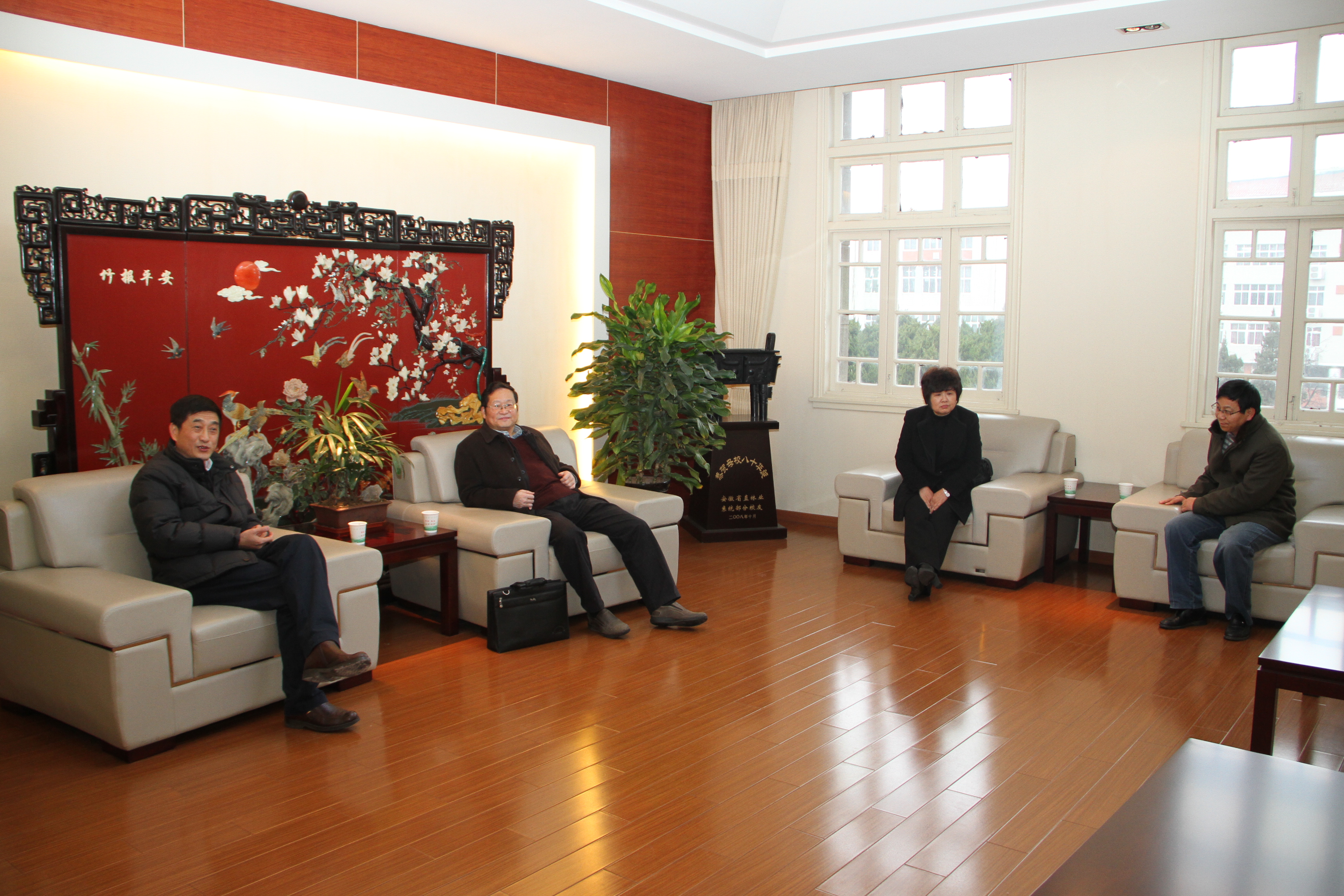 1月6日下午,民盟安徽省委主委郑永飞院士、专职副主委韩卉同志和组织部长汤佳祥一行赴我校调研基层组织建设,校党委书记宛晓春同志接待了郑主委一行。