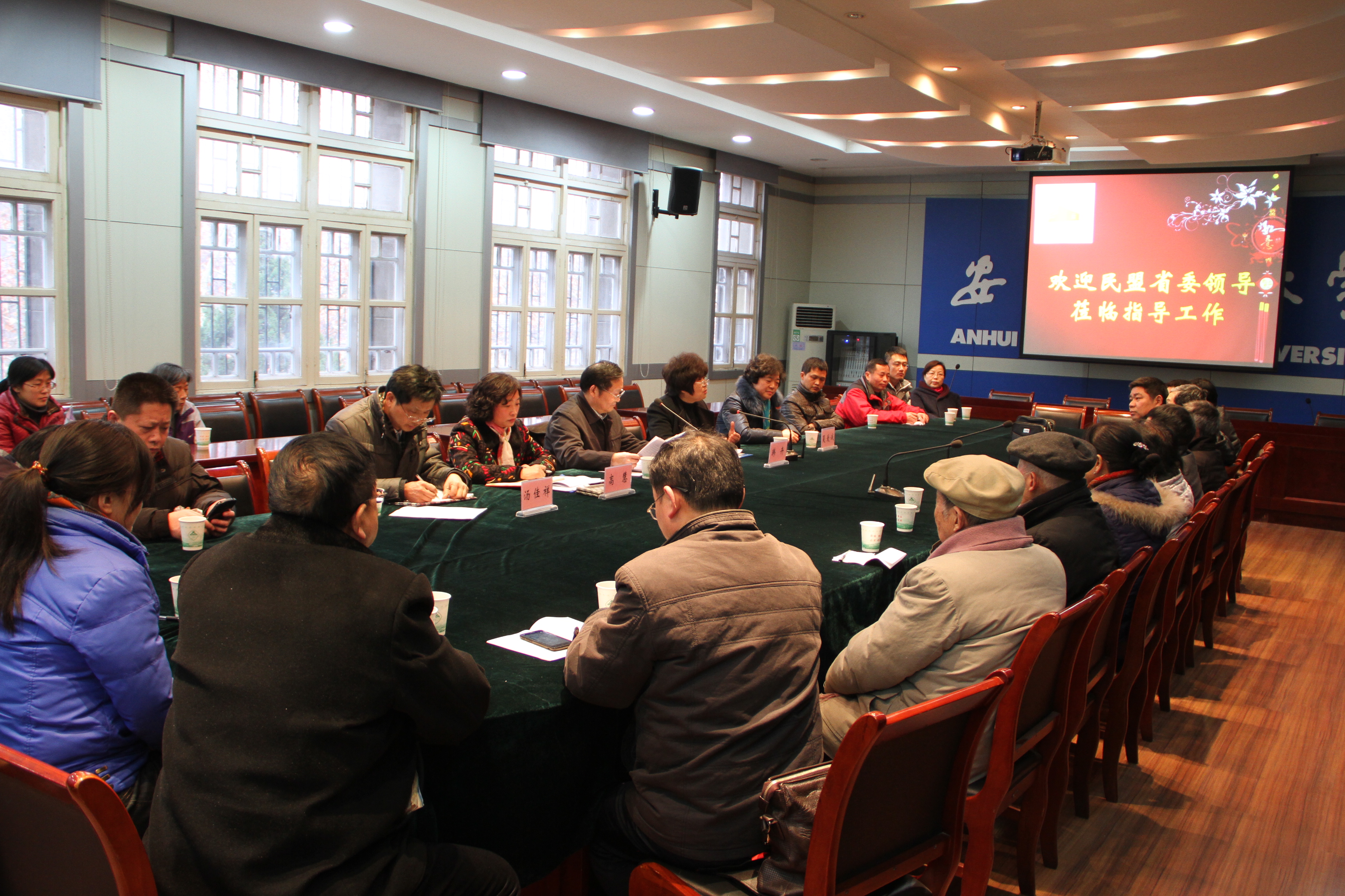 郑主委一行与民盟安农大总支部分盟员进行座谈。会上,校统战部夏爱诚部长首先代表学校欢迎民盟安徽省委领导对安农大的关心指导,肯定民盟安农大总支在参政议政和社会服务方面作出的贡献,勉励年轻盟员继承和发扬优良传统,将好的做法传承下去、发扬光大;积极努力,在各自的工作岗位上作贡献,在党派工作方面发挥更大的作用。民盟安农大总支高慧主委简要介绍了安农大总支的自身建设、组织建设、参政议政以及社会服务工作情况。参会盟员围绕基层组织建设现状、存在的问题及如何进一步做好基层组织工作和如何更好地开展参政议政、社会服务等工作踊跃发言,提出了很好的意见和建议。