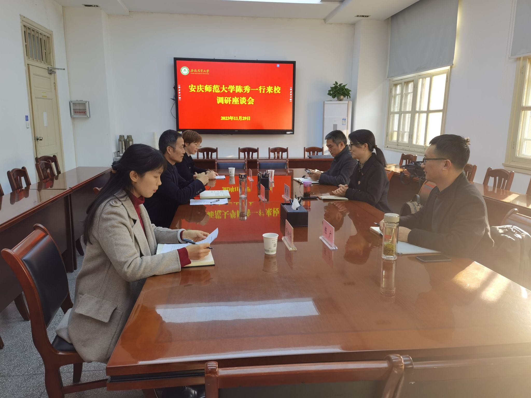 本网讯 11月29日,安庆师范大学党委常委、党委宣传部(统战部)部长陈秀一行来校调研统战工作。校党委常委、组织部部长、统战部部长韩平主持调研会议。