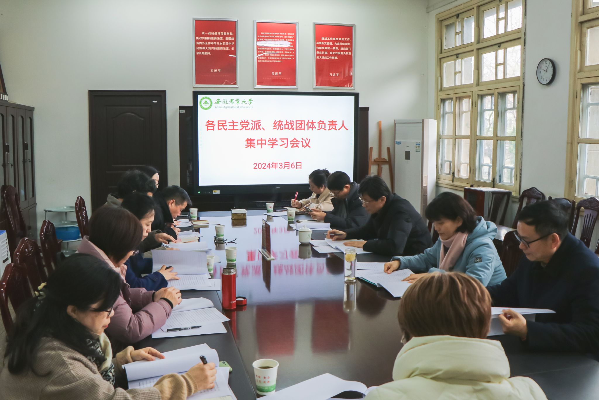会上,韩军通报了学校2023年工作成效和2024年重点工作,集中学习了《求是》杂志发表的习近平总书记重要文章《完整、准确、全面贯彻落实关于做好新时代党的统一战线工作的重要思想》、省委书记韩俊在省委常委会会议暨省委统一战线工作领导小组会议上的讲话精神,传达了教育工委关于“创新发展·高校在行动”主题实践活动的通知。