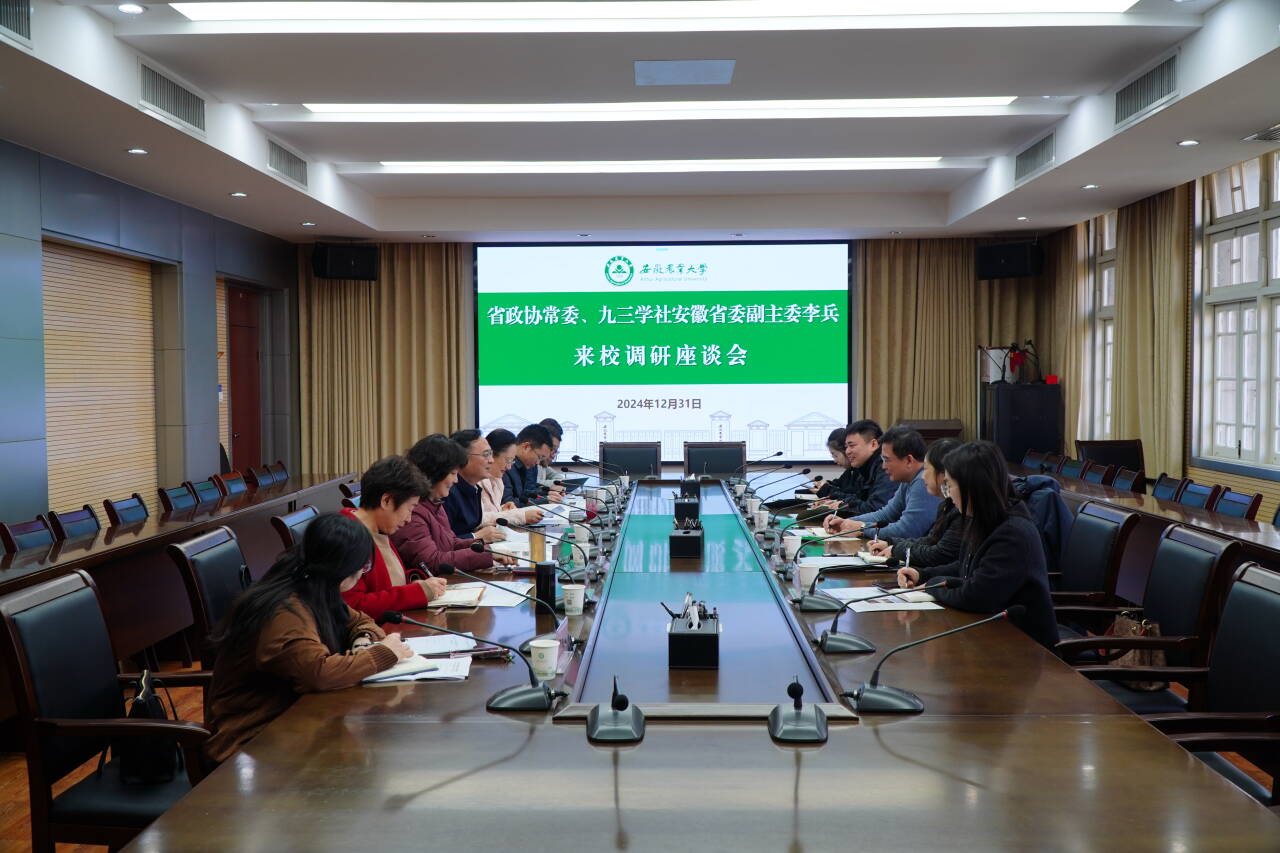 本网讯 12月31日上午,九三学社安徽省委员会副主委李兵一行来我校调研。校党委副书记、校长操海群,党委统战部、社会合作处和九三学社安农大基层委主要负责同志参加座谈会,会议由党委常委、副校长李红主持。