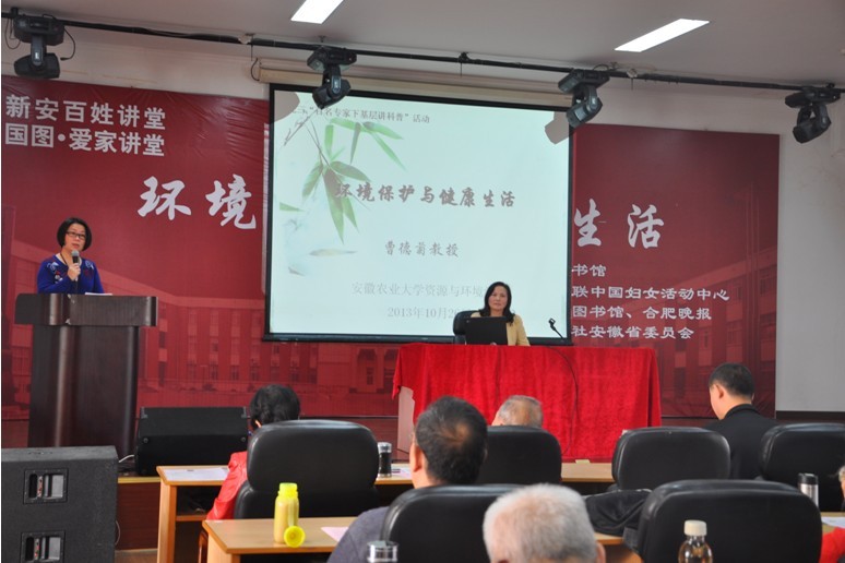 近日,九三学社安农大支社社员、资源与环境学院曹德菊教授作客新安百姓讲堂,为200余名普通百姓作了“环境保护与健康生活”主题讲座。