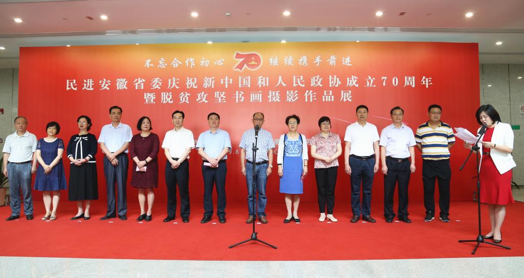 近日,民进安徽省委举行庆祝新中国和人民政协成立70周年暨脱贫攻坚书画摄影作品展。省政协副主席、民进安徽省委主委李和平,省文联主席吴雪,省政协副秘书长高泽海和部分民主党派组织、省工商联以及省扶贫办等单位领导出席开幕式。