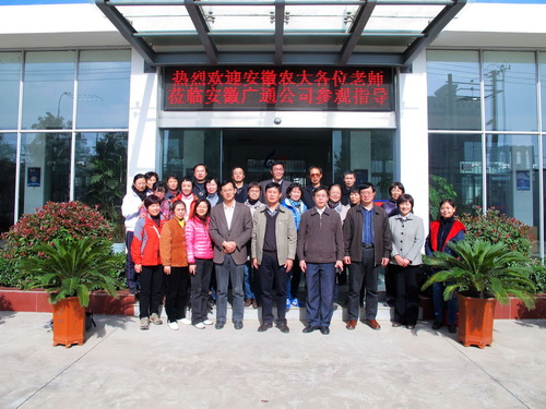 随后,会员们参观了位于六安经济开发区一家集产、学、研一体的高科技农业产业化龙头企业——安徽广通生物科技有限公司。该公司的董事长、我校校友王德平先生亲切地带领会员们参观了公司的生产车间,并就企业的需求、产学研结合与会员们进行了广泛的交流。