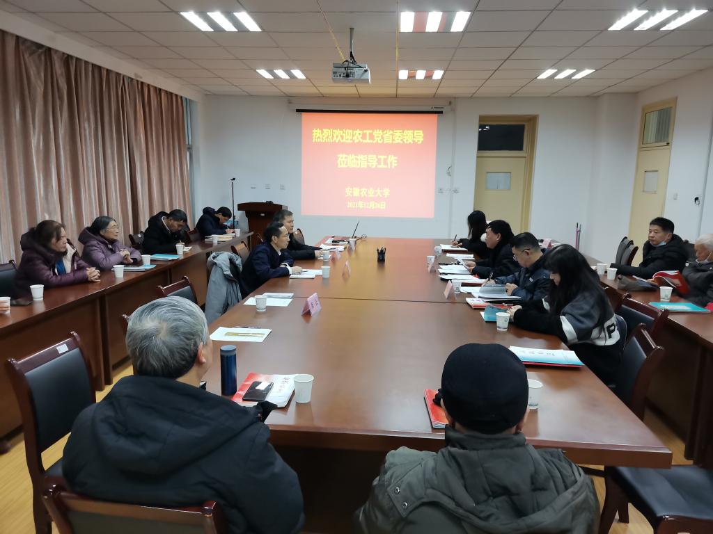 12月26日下午,农工党安农大总支组织党员开展学习“中国共产党十九届六中全会精神”主题教育活动。中国科学院院士、省人大常委、中国科学技术大学副校长、农工党省委副主委杨金龙到会指导。会议由农工党安农大总支主委李金才主持。农工党省委秘书长王国祥,校党委统战部常务副部长崔云出席会议。会前,校党委书记江春会见了杨金龙一行。