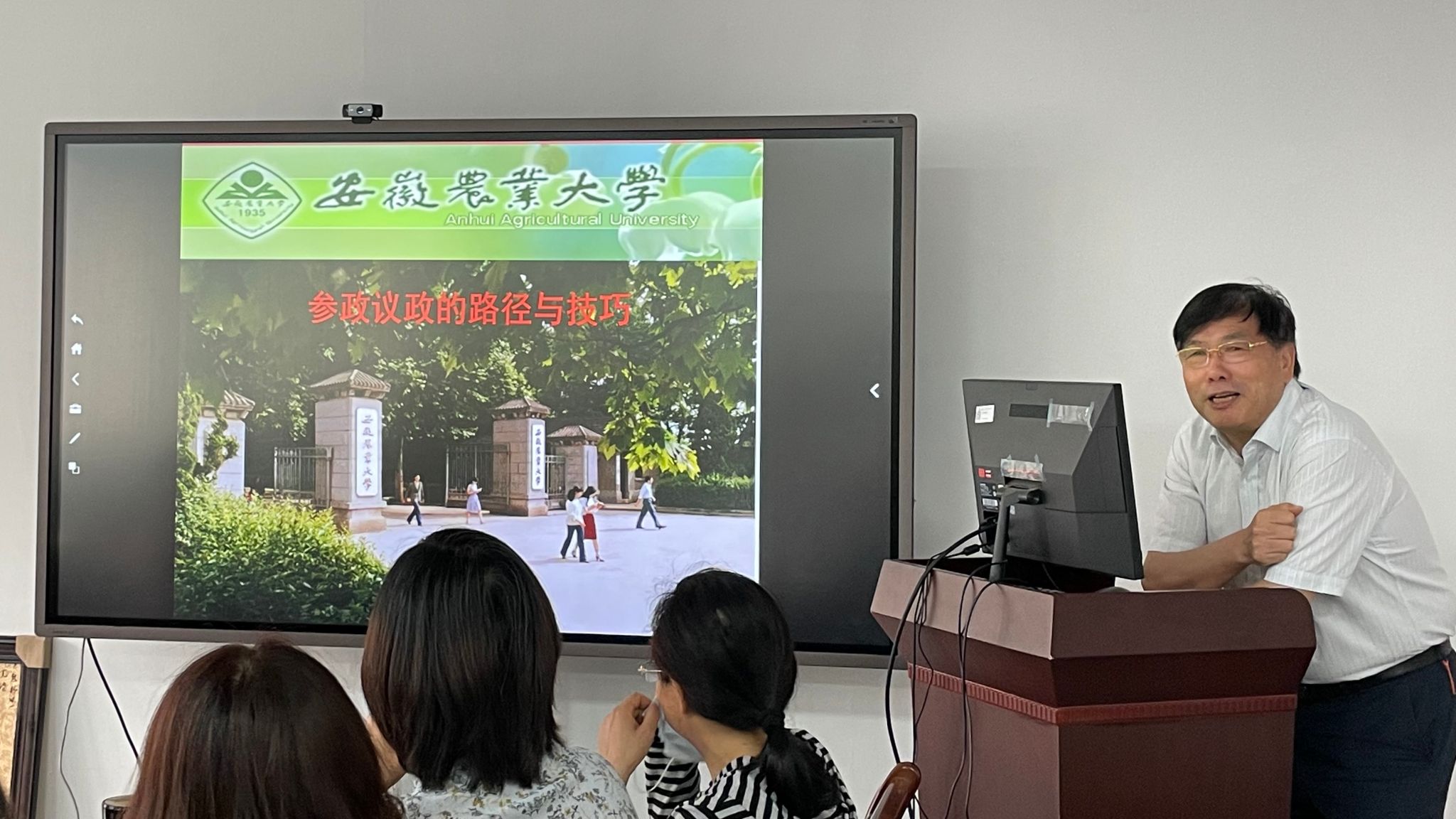 会议邀请省政府参事於忠祥教授做《参政议政的路径与技巧》专题讲座。於忠祥结合自己多年来参政议政的理论思考和实践成果,分享了参政议政的工作方法和经验。他指出,参政议政是民主党派的中心工作,是履行参政党职能的重要内容,要瞄准“国之大者,皖之大计,民之期盼”开展参政议政工作,牢牢把握选题、调研和行文三个环节。要紧紧围绕中心服务大局,发挥民革安农大总支的专业优势,积极建言献策,为推动安徽经济社会高质量发展贡献力量。