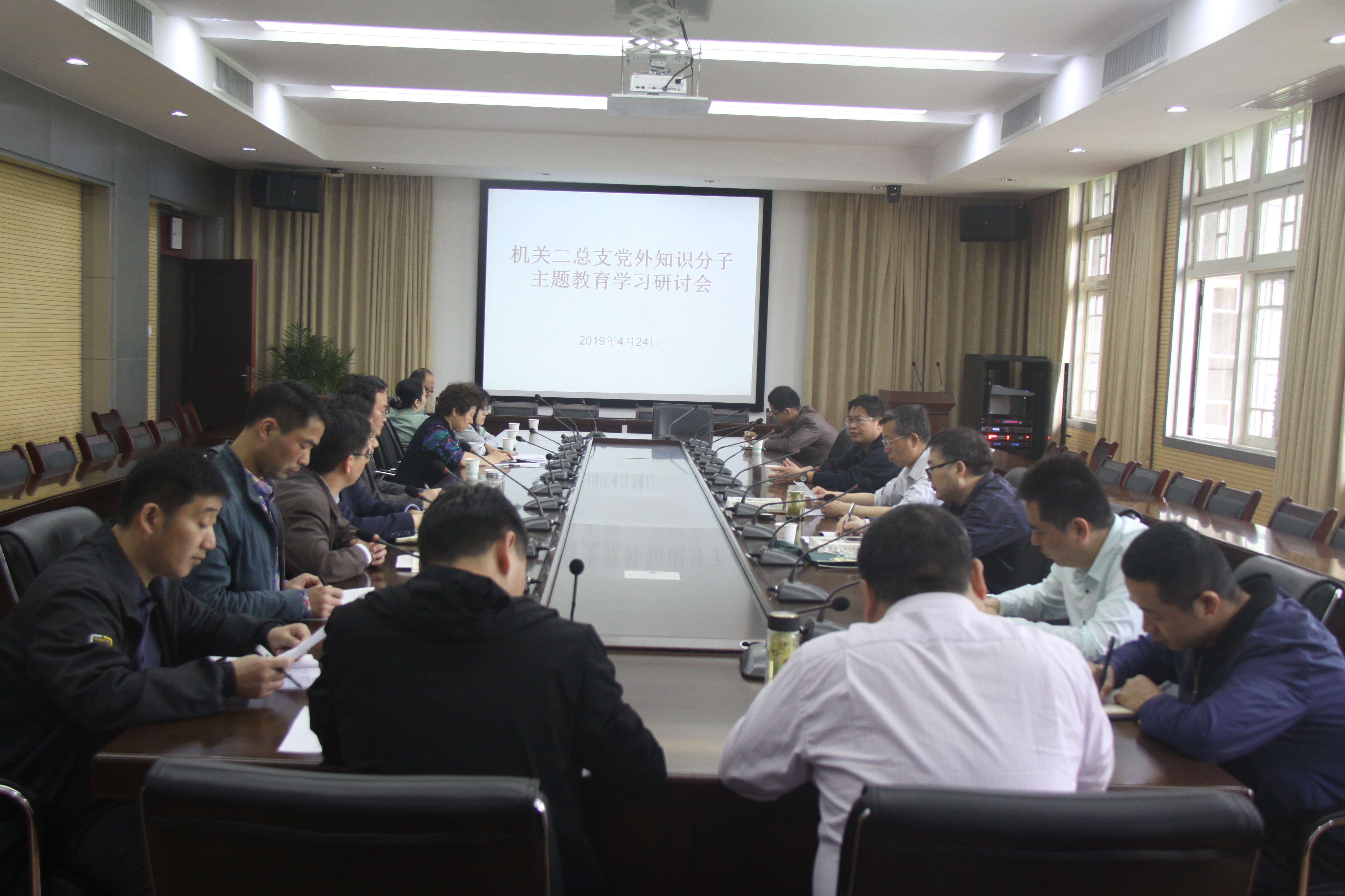 4月24日,机关二总支在校第三会议室召开了党外知识分子“弘扬爱国奋斗精神、建功立业新时代”主题教育学习研讨会。机关第二党总支书记、统战委员,各党支部书记,机关二总支所属单位的20名党外知识分子参加了会议。会议由机关二总支书记管志权主持。